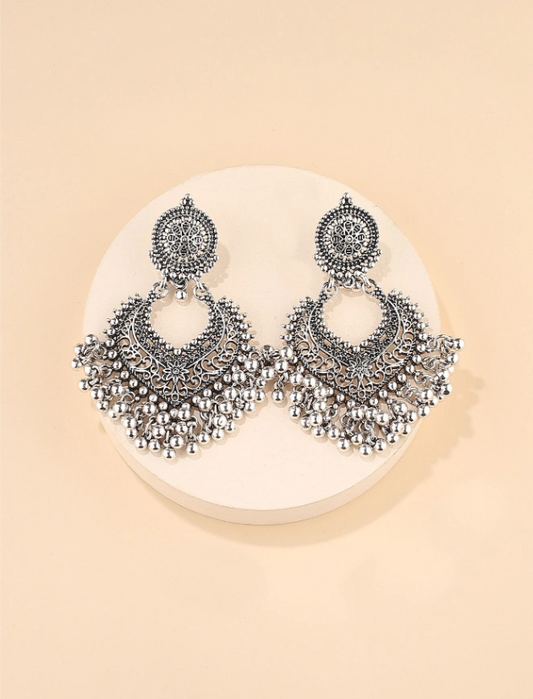 E57 Silver Beaded Tassel Drop Earrings