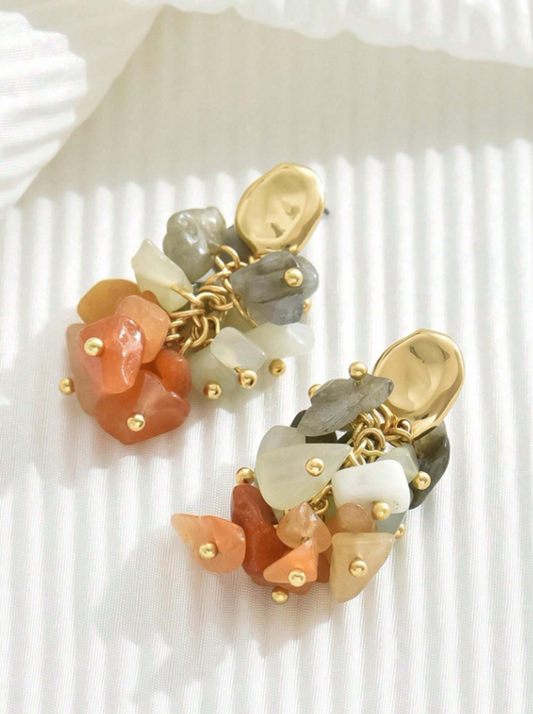 E71 Natural Jade Stone Inlay Earrings