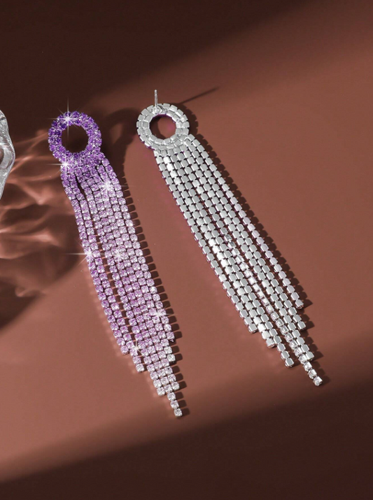 E58 Sparkle Purple Tassel Earrings