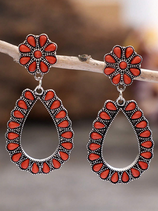 E61 Turquoise Stone Red Teardrop Earrings
