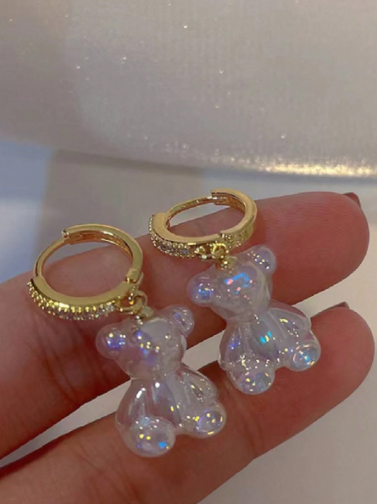 E6 Bear Zirconia Drop Earrings