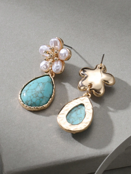 E64 Vintage Pearl & Flower Turquoise Pendant Earrings