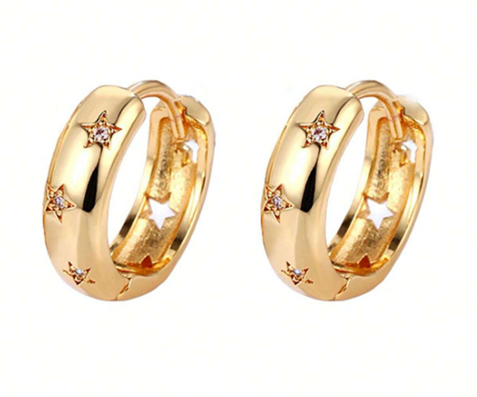 E72 Zircon Inlay Star Design Hoop Earrings