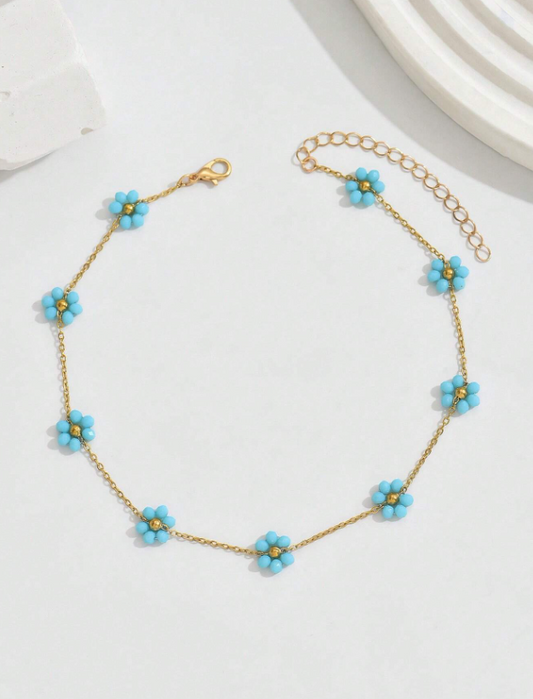 N22 Blue Flowers Pendant Necklace